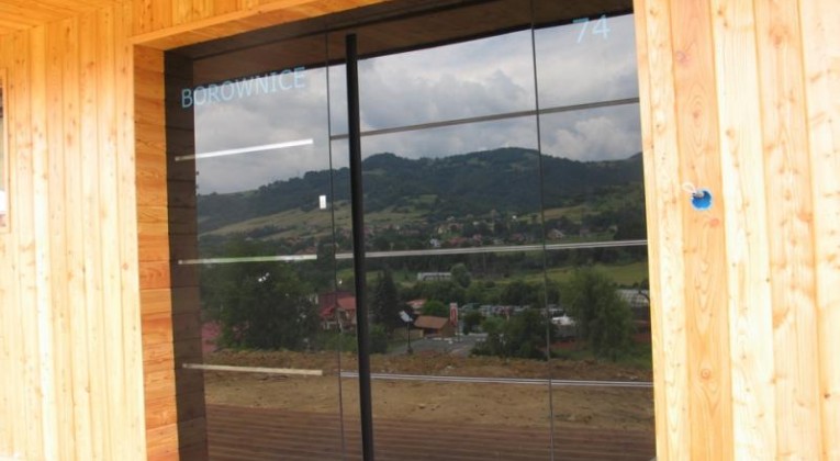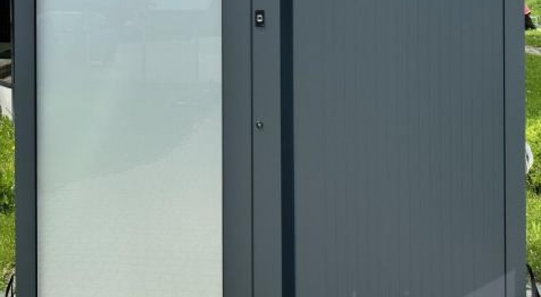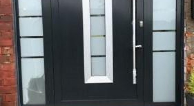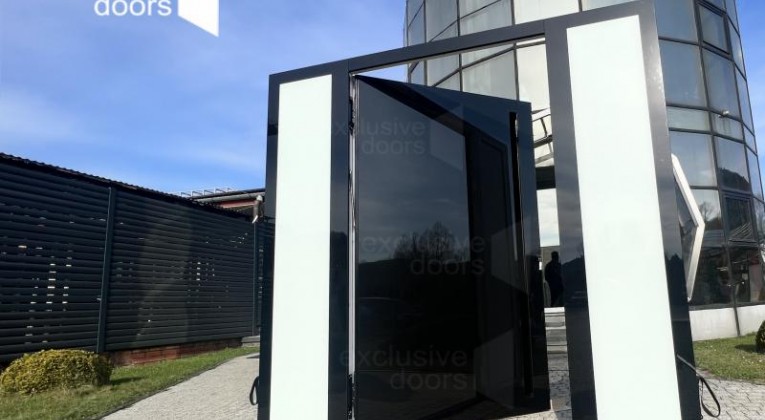 GLASS PANEL WITH DOOR AND SIDE PANELS