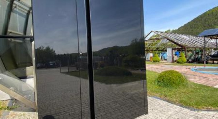 BLACK GLASS WITH 2 WHITE GLASS PANELS